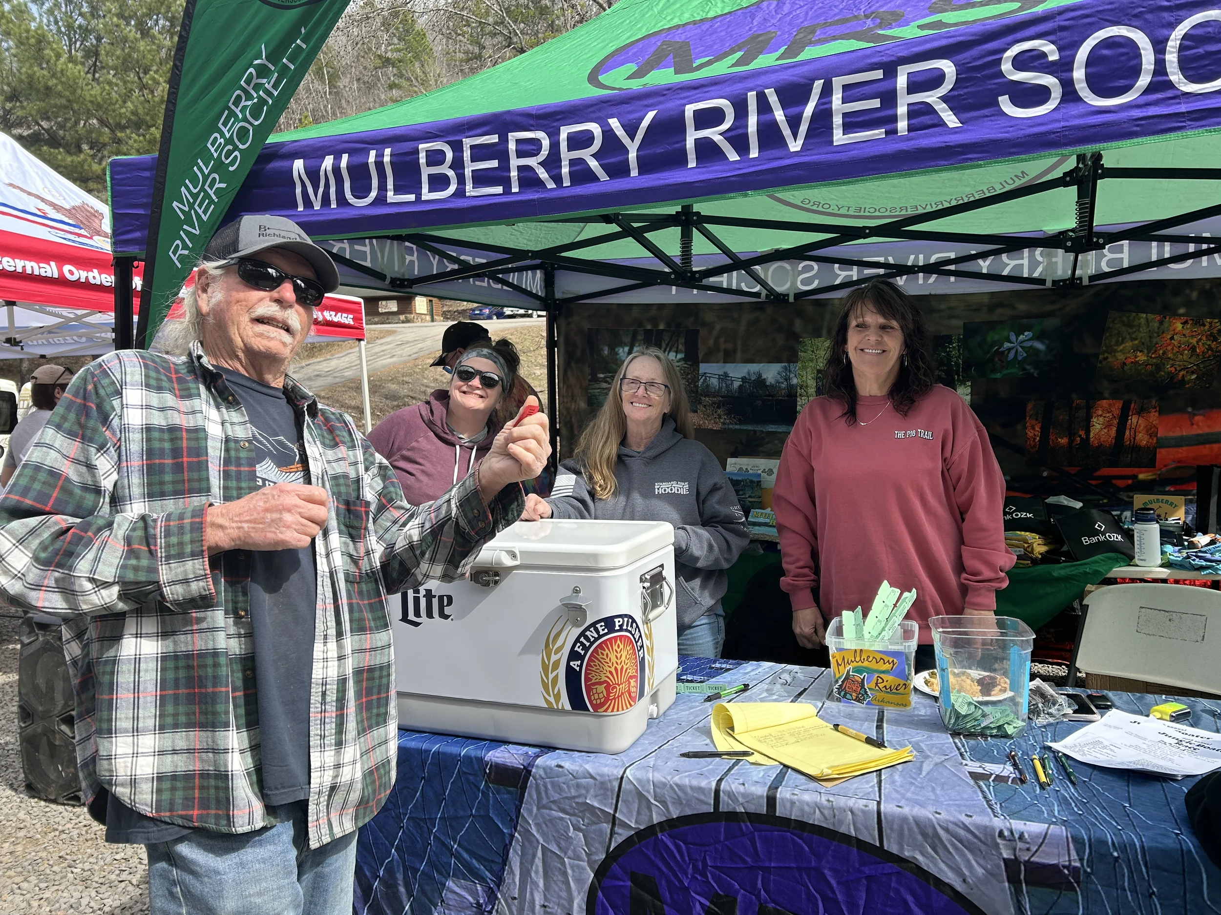 Keep Arkansas Beautiful, Arkansas Stream Team, U.S. Forest Service, Green Source Recycling, KUAF, Mulberry Mountain, White Rock Mountain, Byrd's Adventure Center, Scott family, Don O'Neil, Oark General Store, Arkansas Brewing Company, Coors Light, Eagles Aerie 3455, River Town BBQ, Post Winery, Mt. Bethel Winery, Mark McGee, Pack Rat, Wiedehker Winery, Meadors Lumber's, Paradise Pizza, Graphic Services, Turner Bend, and more.